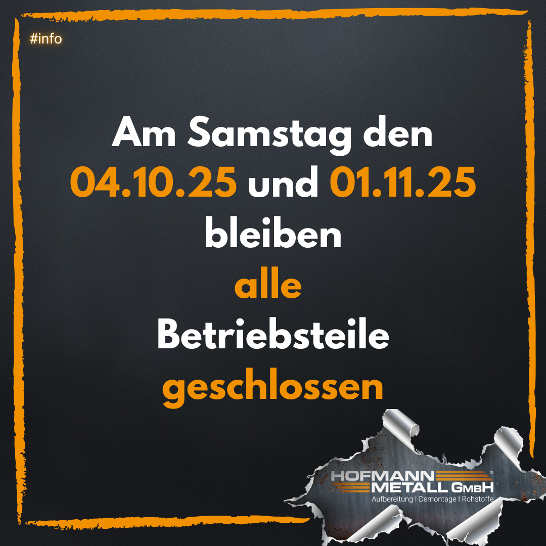 Die Hofmann Metall GmbH mit ihren über 70 Mitarbeitern, ist ein Metallaufbereitungsbetrieb zertifiziert nach ISO 9001 : 2015, ISO 14001 : 2015 und Entsorgungsfachbetrieb gemäß §§ 56 und 57 KrWG und seit über 30 Jahren Bestandteil der Wertschöpfungskette des produzierenden Gewerbes.